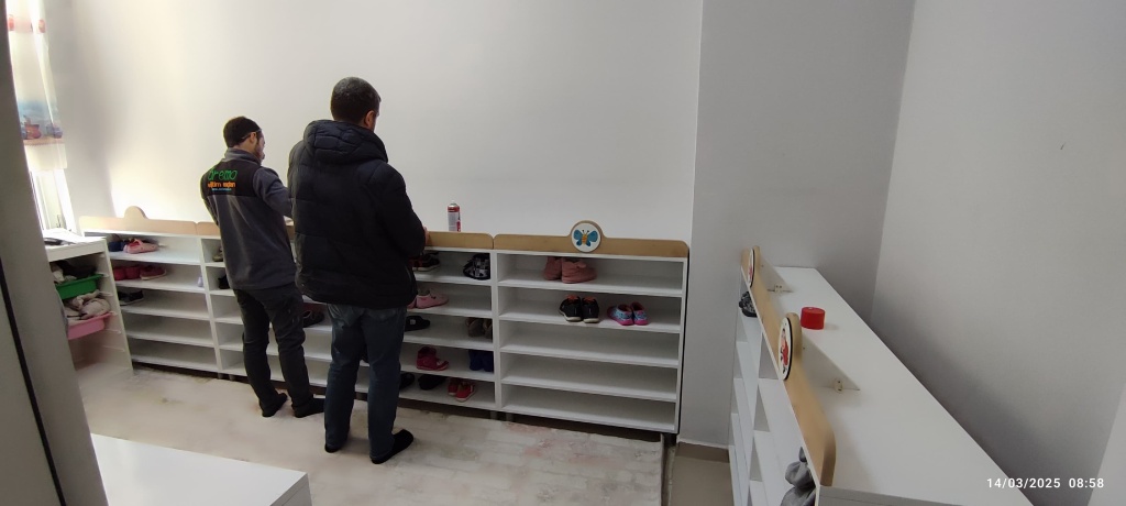 Oyun odası ve yemekhane peteklere çit kaplama yapıldı.